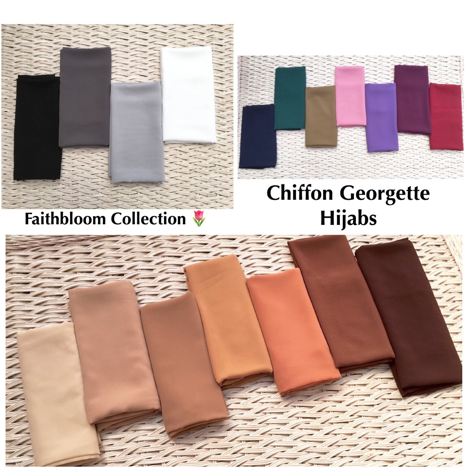 Introducing our much awaited Chiffon Georgette Hijabs for just £6.15 each. Available in a range of 22 colours: